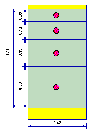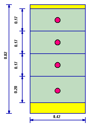 Let's develop this example further, and compare two easy styles. We design a four drawer chest for our kitchen. We could set the hight to 82 cm, and width 42 cm. while the depth is not important for this example (see figure). The total hight of the drawers is 71 cm.