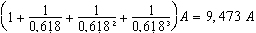 How to set the heights? If A is the hight of the lowest drawer, than the hight of the next drawer would be A/0.618, the third one (A/0.618)/0.618 = A/(0.6182), and the forth one A/(0.6183). The total hight, indicated proportionally the the hight of the lowest one, would than be: